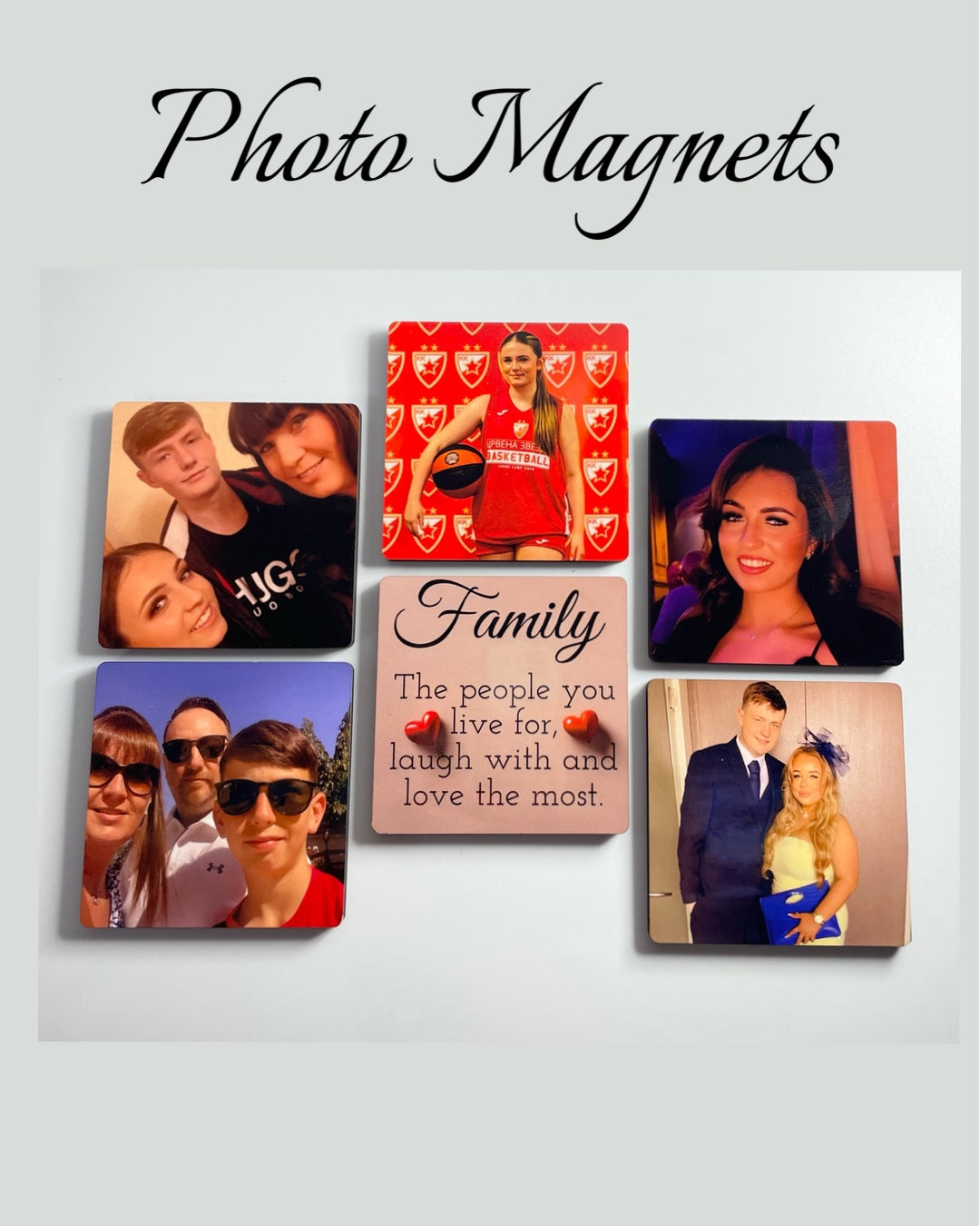 Capture life’s most meaningful moments with our beautifully crafted personalised magnets. Made from durable MDF and measuring 5cm x 5cm, each magnet features a high-quality gloss finish that enhances colours and details—perfect for showcasing your favourite photos or custom designs.