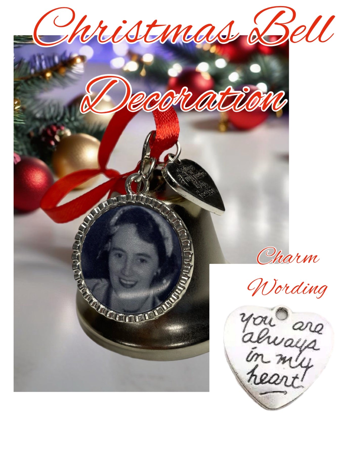 Celebrate the memory of a loved one this festive season with our Personalised Christmas Bell Decoration. Featuring a photo of your choice and a heart shaped charm engraved with âYou are always in my heart,â this beautiful bell ornament is a heartfelt addition to any Christmas tree or memorial display.
